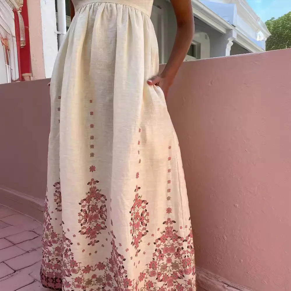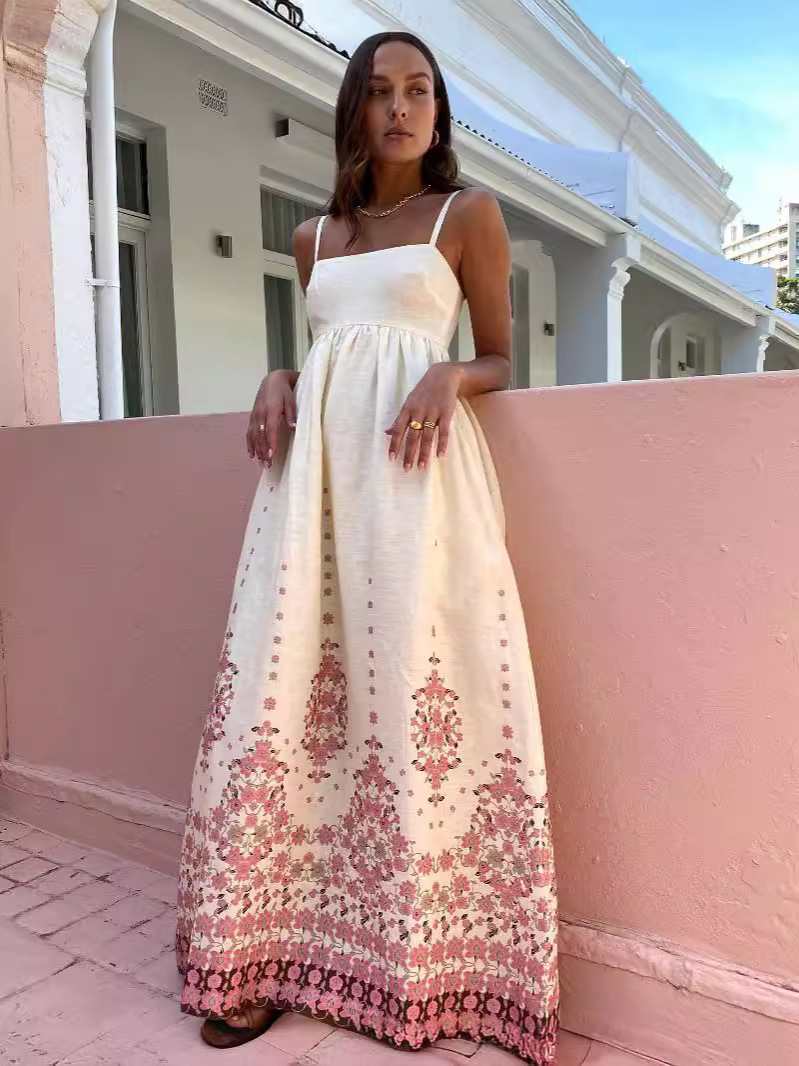 Best Price Women’s Boho Spaghetti Straps Floral Dress Square Neck Casual Long Dress Beach Swing Party Maxi Dress